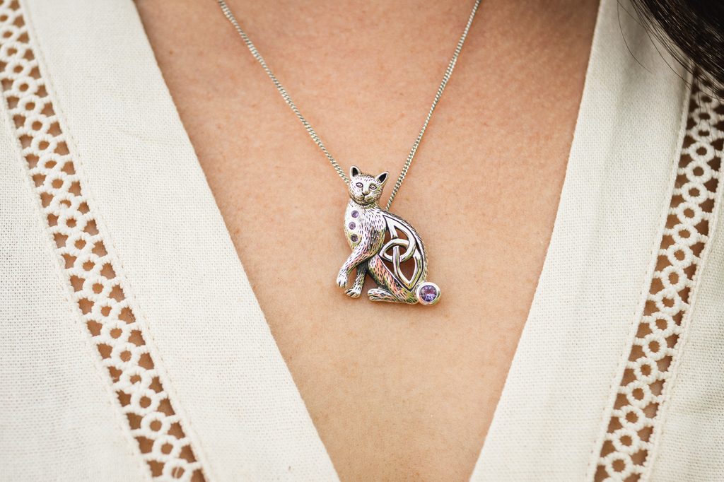 Hluboká symbolika: Spojení kočky a ametystu přináší šperku významnou duchovní hodnotu.