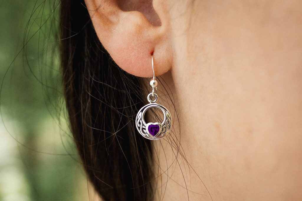 Celtic Knot Silver Earrings with Heart Amethyst are a timeless tribute to the ancient Celtic culture. Crafted from fine sterling silver, these earrings feature intricate Celtic knots, symbolizing the interconnectedness of life with an over-under pattern. At the heart of each knot, a 4x4 mm amethyst sparkles, adding a touch of fantasy to your style. With a diameter of 12.5 mm, these earrings are a perfect blend of history, art, and elegance.