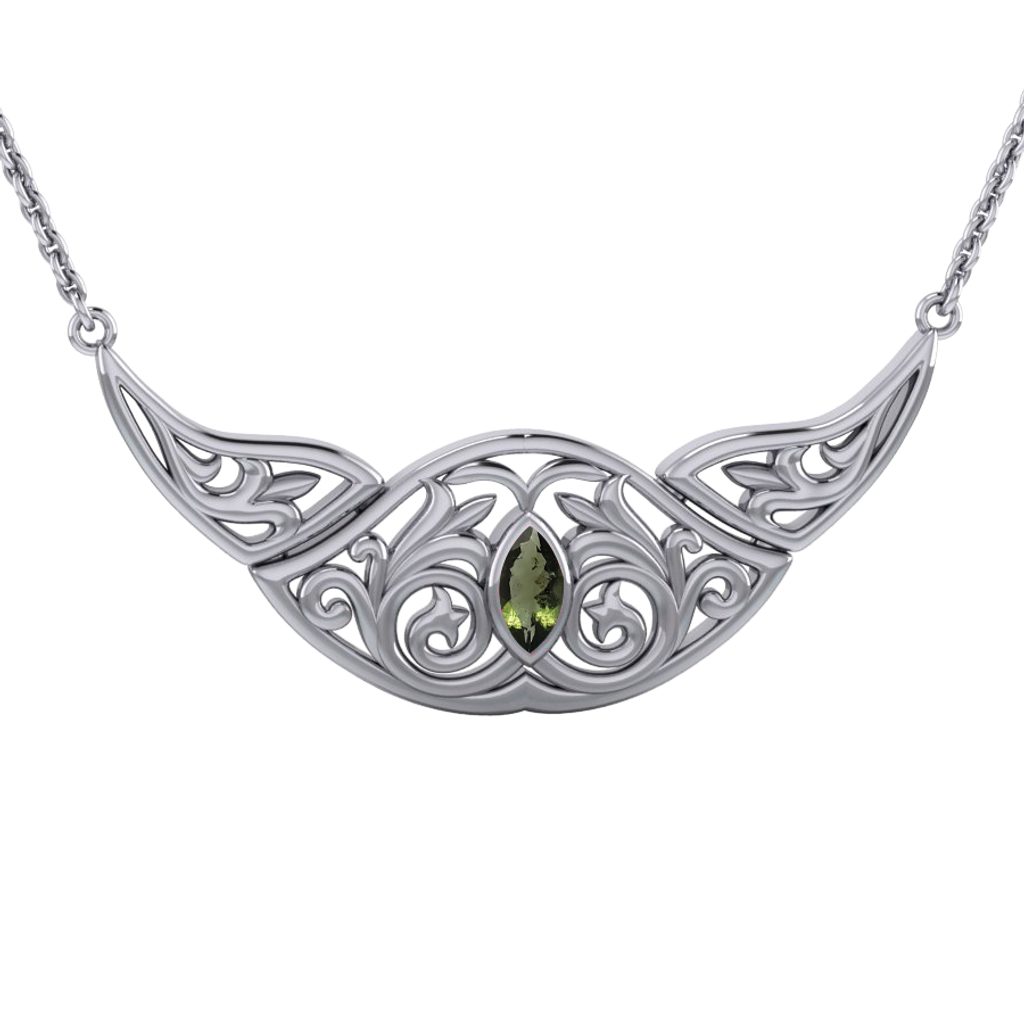 Křídla Avalonu – stříbrný náhrdelník s vltavínem