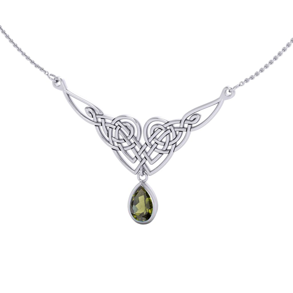 Lady Avalon – luxusní keltský stříbrný náhrdelník s velkým pravým českým vltavínem Spojení magického kamene z nitra české země a nadčasové keltské symboliky