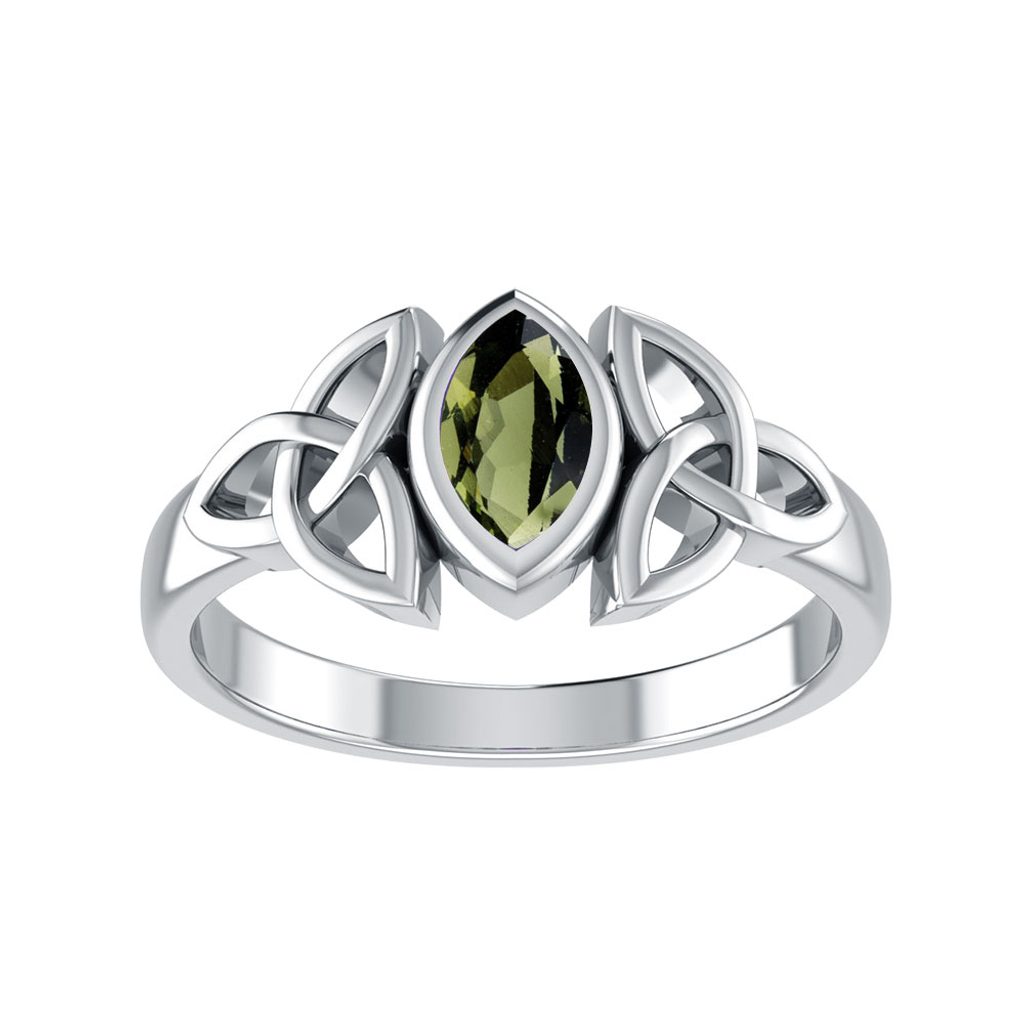 Zelené pouto – Stříbrný keltský prsten s pravým vltavínem